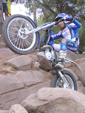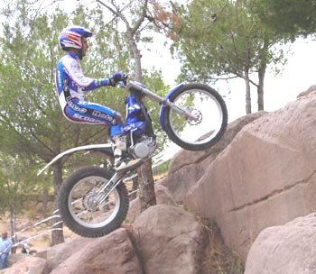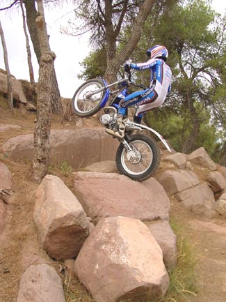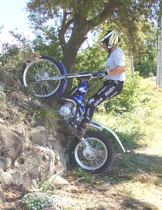 Después de una larga tanda de escalones, giros, subidas y bajadas en la exigente zona de entreno que Manzi, Fujinami o el mismo Lampkin tienen en Navás, Alcaraz pudo corroborarnos que el paso adelante a nivel de comportamiento en competición de la Scorpa ha sido importante. Y es que a falta de un piloto de primera línea hasta su llegada, la especial SY no se había desarrollado demasiado en este aspecto durante la temporada 2001, pero después del intenso trabajo del de Zona Cero y con la inestimable experiencia de Lluis Gallach las modificaciones hechas en la moto le han dado un toque racing de lo más apetitoso, que se nota ya desde los primeros momentos después de ponerla en marcha.