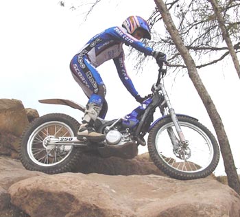 Las subidas largas ponen también a la vista las limitaciones de potencia, aunque esto también sucede normalmente con las octavo de litro dos tiempos , y con la Scorpa es especialmente importante no dejar caer demasiado de vueltas el motor ya que es un poco más difícil remontarlo que en el caso de sus colegas de transfers. Si a base de embrague conseguimos que el motor no se venga abajo enseguida disponemos de tracción y la moto vuelve a moverse, con lo que con esta moto no es tan fácil que se dé la típica imágen de las 125 dos tiempos patinando como locas mientras el piloto tira del embrague desesperadamente.