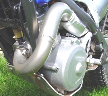 El propulsor también presenta cambios con respecto al modelo dos mil dos. El que más apreciamos exteriormente es la forma del codo de salida del escape, más corta y cerrada, además de estar fabricado en un nuevo material. La variación en la forma es debida a los cambios interiores que ha sufrido el motor Yamaha, pero a la vez resulta muy útil ya que el codo del escape queda mucho más recogido, y con ello mucho más resguardado de los golpes que en el modelo precedente.