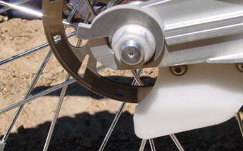 Al respecto hay que decir que las suspensiones de esta unidad estan muy bien puestas a punto, y la moto se come cualquier irregularidad del terreno sin problemas. Si algún pero le buscamos hay que decir que se mantiene la horquilla Paioli de serie y el tacto en nuestra opinión es algo blando, además de que en algunos casos incluso se detecta algún tope en extensión. Además da la sensación que el grado de lanzamiento de la horquilla es bastante cerrado, lo que hace muy fácil mover la rueda trasera, aunque por otra parte hay que tener un poco de cuidado en las bajadas, especialmente cuando nos llega algún obstáculo imprevisto y estamos ya con la suspensión comprimida, ya que la moto tiene una cierta tendencia a levantarse de atrás. No obstante creo que en este caso estamos más ante una ventaja que un inconveniente, por la ya citada facilidad para hacer cambios con la rueda trasera.