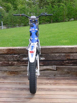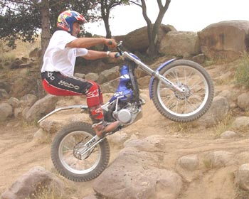 La posición sobre la moto es también excelente, al menos para pilotos de nuestra talla (1.70), y la moto no se nota para nada pequeña, aunque la altura al suelo desde el "asiento" no parece tan baja como pueda ser la de una Sherco o una GG. Lo que si destacaremos es la estrechez del chasis en la zona de las piernas, muy buena, con lo que continúa siendo muy fácil mover la moto con una simple presión sobre la estribera del lado elegido.