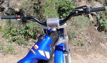 De entrada la puesta en marcha en frío no presenta ningún tipo de problema, el grifo de gasolina es perfectamente accesible aún llevando guantes ya que está situado muy cerca del borde inferior del depósito, mientras que el tirador del aire está entre la placa de faro y el manillar, con lo que no hay ni que agacharse. La compresión del pequeño motor Yamaha es proporcional a su baja cilindrada y simplemente dando un ligero empujón a la bien dimensionada palanca de arranque el escape empezará a emitir el rítmico sonido cuatro tiempos. Tanto en esta unidad como en los kits franceses el nivel de ruido es bastante más alto que en el modelo de serie (extremadamente silencioso por cierto), pero en ningún caso excesivo, aunque si que queda claro que las cuatro tiempos de trial no se van a caracterizar por su bajo nivel de decibelios a la que se les aplique cualquier kit, un poco en la línea de lo que está pasando con las enduro cuatro tiempos de competición.