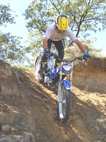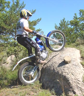 Una vez el motor toma un poco de temperatura y se le "aclara la voz" ya nos damos cuenta de que algo ha cambiado dentro del Yamaha, y es que las subidas de vueltas son mucho más rápidas y nítidas que en la moto del 2002, e incluso el sonido del escape, algo más agudo, así lo denota. La moto tiene más tirón, o al menos es más rápido, pero no es brusco. Hay que comprobarlo en las zonas y al llegar al primer escalón enseguida vemos que la moto dispara más fácilmente, pero lo más importante es que puedes aguantar con el motor a poquísimas vueltas pero empujando hasta casi comerte el obstáculo, y la moto recupera de una forma espléndida. El propulsor Yamaha era el más potente de los motores de las trialeras 2002, pero por contra era un motor un poco más "perezoso" que el de la competencia a la hora de subir de vueltas, aunque su buen par hacía que la potencia disponible fuera importante en toda la banda de revoluciones, con lo que el empuje era lineal.