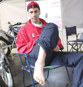 asistiendo a su piloto Joan Cordón, que duda si dejar el trial