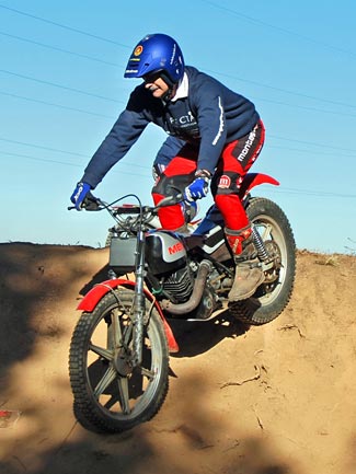 Las horas fueron corriendo sin apenas darnos cuenta y cada vez las zonas se iban complicando un poco más. Los niños tomaron buena nota de cada gesto y de cada consejo que Manu comentaba y al final nos juntamos todos para hacer una pequeña ruta. Para esta ocasión Manu se puso a los mandos de una Merlín Gallach Réplica que le llevamos para el curso y que manejó como si de una moto de última generación se tratara.