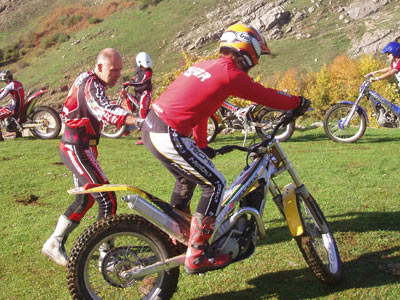 El sábado a las 10 de la mañana se iniciaba el evento, Jordi Tarrés ya estaba allí esperando a las 9,30, puntualidad de campeón. Tras las presentaciones de rigor inició sus enseñanzas con unas nociones de puesta apunto de la moto, manillar, manetas, pasando posteriormente a realizar ejercicios de equilibrio estático, control del embrague y acelerador, posición del cuerpo y giros. Luego marcó una zona con dos niveles y a practicar.