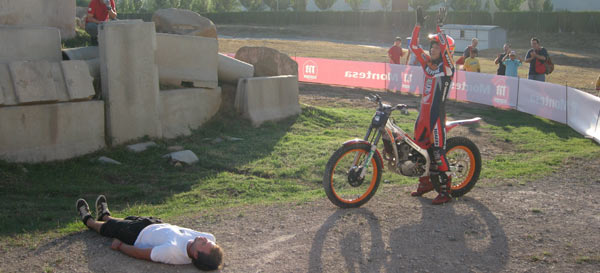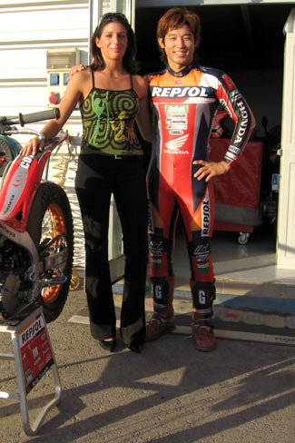 Takahisa Fujinami, a pesar de estar inmerso en la recta final del campeonato del mundo open de trial, no dudó ni un momento en pasar un rato con esta gran familia de asociados de Montesa-Honda S.A.