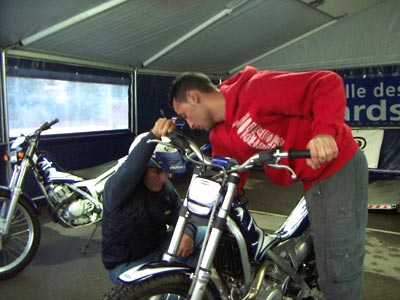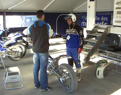 Mientras tanto aprovecho para probar la 4 Tricks... ¡Todo el mundo deberia tener una,es divertídisima! Después de mi la probó una chaval que nos dejó a todos con la boca abierta de lo que se puede hacer con ella. Bueno, mientras yo me divierto el bueno de Carlos me ha dejado la moto lista, esto es como ser oficial del todo. La llevo al parque cerrado y hasta mañana.