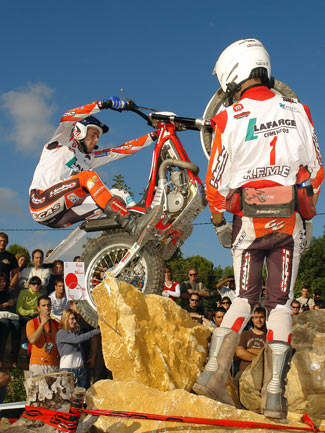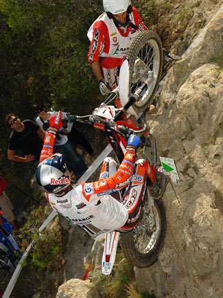 Nuestra ventaja es que mi Gas Gas es súper ligera y altamente manejable; como contrapartida, ellos tienen más potencia, adherencia y tracción. Pero eso no nos impresiona: le sacamos gran partido a nuestros puntos fuertes.