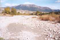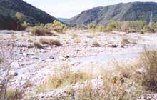 - Para acompañar las alegaciones, hacemos un reportaje fotográfico del barranco y del río (alguas de las fotos que aquí se muestran junto con los comentarios que se hicieron de ellas): ¡¡¡sorpresa!!!en el barranco hay puesto un "pastor eléctrico" (es una cinta electrificada que delimita un terreno dentro del cual hay ganado y así no se escapa). O sea, que nos denuncian por alterar la vegetación de ese barranco ¿y las vacas que hay ahora justo por donde iba el trial, qué comen? ¿pizzas?, ¿frankfurt?.. Hay más; ese mismo barranco (y los puntos por donde se cruzó el rió Basa "afectando a la fauna piscícola"), son lugar habitual de paso de un rebaño de (depende de la época) 900- 1.200 ovejas. Es decir, que 1200 ovejas haciendo un "varios arrastrao" no molestan a los barbos y las motos de trial, sí. Apaga y vámonos...
