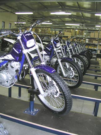 Cada unidad es probada en marcha, una por una, para comprobar que no hay ningún tipo de incidencia. Después desmontan el manillar y las palancas de freno y cambio para ser embaladas y enviadas a su destino, ya sea en Europa, Japón, Canadá, Nueva Zelanda y otros países de todo el mundo.