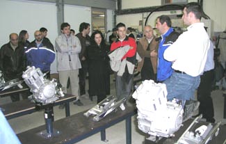 Llegamos a la fábrica, situada en el exterior del complejo Pôle Mécanique. Josep Mª nos hace la presentación de Jean Marc Autheman, director de marketing de Scorpa, y nos expone el programa de la visita.
