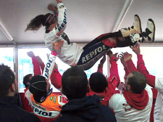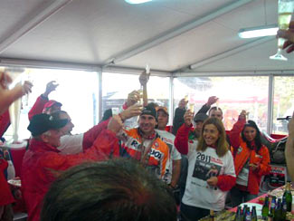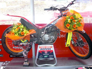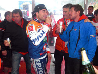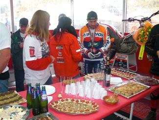 Sin duda el equipo Repsol Montesa Honda ha sido el que más éxitos ha cosechado esta temporada y aunque la temporada no ha terminado, a falta de los Campeonatos de España Indoor y Outdoor, sus tres pilotos y el resto de miembros del equipo pueden sentirse más que satisfechos. Para celebrar los títulos mundiales 2011 de Toni Bou, de Laia Sanz y de Montesa, celebraron al finalizar el Gran Premio de Europa en Isola 2000 una gran fiesta a la que estuvieron invitados todos los demás pilotos y equipos y de la que os ofrecemos algunas fotos. Pero antes, una simpática mini entrevista en video a Laia Sanz, Toni Bou y Takahisa Fujinami: