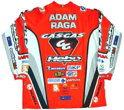 A medio camino entre el objeto de colección y el de uso diario tenéis esta camiseta, la oficial de Adam Raga, también un regalo bastante exclusivo del que hay muy pocas unidades. Es la misma que ha utilizado este año en sus entrenamientos, con su nombre y sus patrocinadores, fabricada por Hebo.