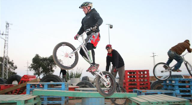 Por la tarde todos se trasladaron al Bicipark que dirige Cesar Cañas en Premia de Dalt (Barcelona). Allí los pilotos de moto pudieron demostrar sus habilidades sobre las bicis de los campeones de biketrial.