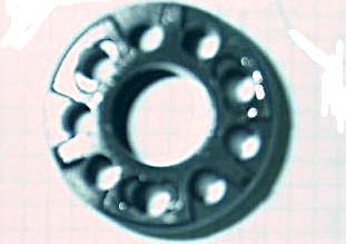 En la figura 15 se observa mejor el cuerpo principal del pistón. Los taladros acaban en almenas que están dispuestas para que cierren las láminas de un lado o las del otro, y además, quede siempre un pequeño espacio por el que pueda fluir el aceite.