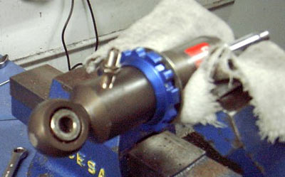 Ahora colocamos el vástago ya con el pistón principal montado y vamos empujando