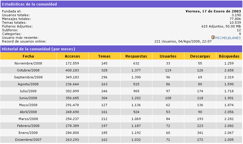 Sumario de estadíticas únicamente sección foro (no contabilizado en gráfico anterior)