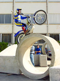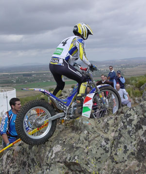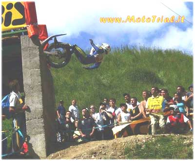 En la segunda jornada la gran noticia del día estaba en el gran triunfo conseguido por el piloto estrella de Todotrial Josep Manzano, que se proclamaba Campeón del Mundo Junior a falta de 3 pruebas para el término del campeonato. Manzi lograba una nueva victoria por delante de Jerome Bethune y Taich Tanaka, la décima consecutiva. Pero Manzi no sólo era protagonista por lograr el título, también lo era de un suceso bastante desafortunado. Antes de la alegría y la celebración del Campeonato había unos momentos bastante tensos, pues Manzi tenía la mala suerte de caer aparatosamente en el último obstáculo de la última zona de la última vuelta. Al ver la foto de la caida, gentilmente cedida por Silvano Brambilla de Mototrial, se nos quedan los pelos de punta. En el momento en que Manzi se encontraba en el punto más alto, golpeaba la barbilla con el manillar al encojer el cuerpo para superar el obstáculo y quedaba inconsciente en el aire, cayendo a continuación fuertemente contra el suelo. Josep estaba inconsciente pero al rato volvía en sí. De inmediato se le subió en la camilla y tras un primer chequeo en la ambulancia fue trasladado en Helicóptero al hospital de Bérgamo. Afortunadamente sólo le tuvieron que dar dos puntos en la barbilla. Al menos podía entregarse la tarjeta, sentenciando su décima victoria consecutiva con lo que el título de Campeón del Mundo Junior era suyo. En fin un Campeonato del Mundo que se merece Manzano más que nadie. FELICIDADES MANZI!!!!!!!!