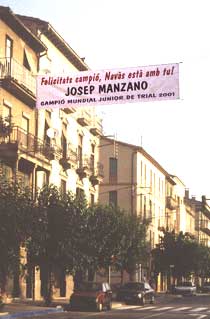 El pasado martes 17 de julio se celebró un homenaje al piloto Todotrial Josep Manzano en su localidad natal, Navàs (Barcelona). Con ello el pueblo entero quería felicitarle por su reciente Campeonato del Mundo Junior, así como por su humildad y simpatía. El acto resultó bonito y emotivo, con mucho sentimiento, nada que ver con esos actos frios o de compromiso, y es que Josep es muy querido en Navàs, y buena muestra de ello era la pancarta que estaba colocada en la calle principal desde una semana antes.