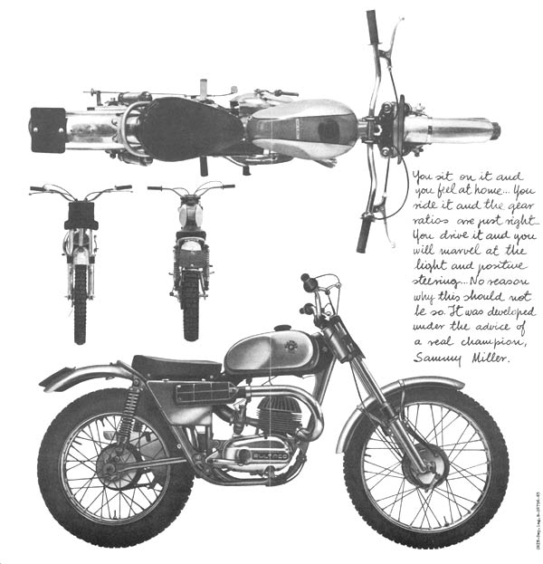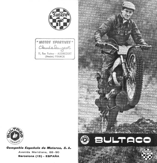 Esta vez os traemos una nueva versión del catálogo de la primera Sherpa T, la modelo 10 conocida como "Sammy Miller". La diferencia es que este está en inglés, pero lo bueno es que tiene mucha mayor calidad que el que ya se encuentra en esta misma sección. En este pueden apreciarse mucho mejor las fotografías y los detalles de la moto, pues el modelo original estaba perfectamente conservado. Podemos ponerlo a disposición de los trialeros internautas gracias a Vincent Dufouleur, un gran aficionado francés, propietario de varias Bultaco, Montesas y Ossas de trial. El documento original lo adquirió recientemente en una feria, y presenta el sello de la tienda de Claude Peugeot un de los trialeros más importantes en Francia de la época junto con Claude Coutard. El tamaño aproximado es de un Din-A3 pero más corto. Al desdoblarlo lo veremos de la manera que aparece en el esquema de la derecha. |