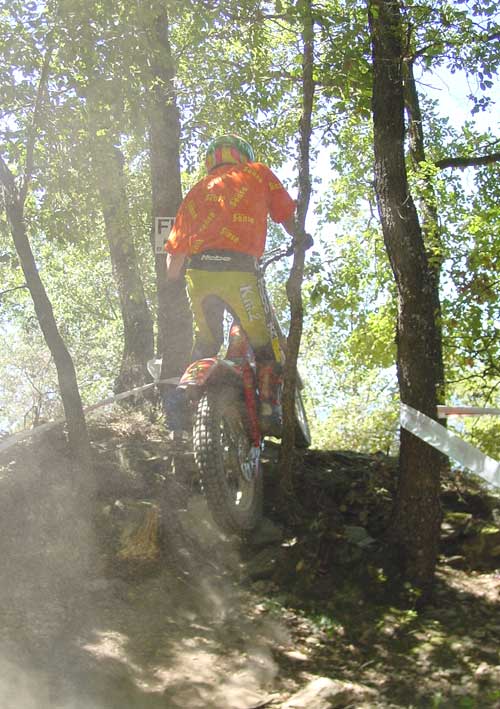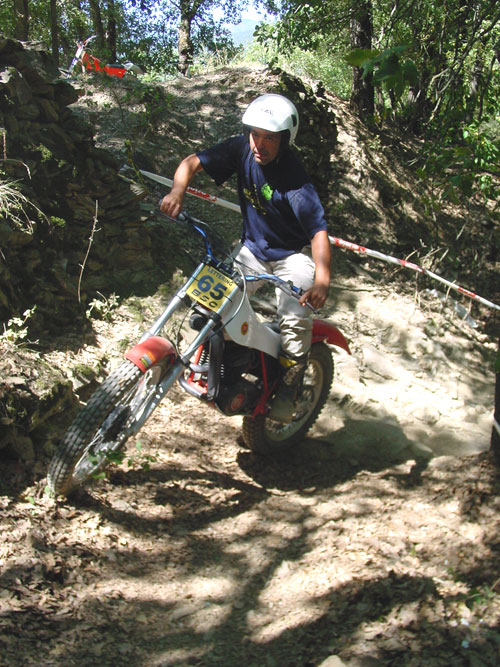 Desde siempre el ambiente trialero ha sido uno de los puntos fuertes en la zona, y uno de los mejores exponentes es que un tal Jordi Pascuet vive y entrena justo por ahí. Recuerdo hace unos años, cuando ojeando una revista de coches clásicos apareció un artículo con unas fotos magníficas sobre un trial de motos clásicas. Por aquella época esto era de lo más raro, ya que prácticamente estaba aún naciendo la afición por el fenómeno del trial clásico, y me quedé absorto viendo las fotos de todas esas motos con las que había soñado de niño, y supongo que muchos más como yo hicieron lo mismo, y al cabo de unos meses ya había conseguido una vetusta Cota 247 en una tienda de motos mientras el propietario me miraba incrédulo pensando sin duda "¿que diablos va a hacer este tipo con esta antigualla?" . Esas fotos eran del Trial del Pla de Sant Tirs, y seguro que ese fue el primer día del renacimiento de la pasión por las trialeras clásicas de muchos de los que hoy estan o han estado disfrutando de sus Sherpa, Cota u Ossa Mick Andrews en los últimos diez años. Por lo tanto, gracias a la gente del Pla de Sant Tirs, y feliz aniversario.