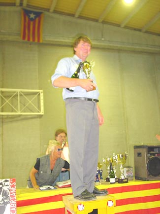 La entrega de trofeos, dirigida por Ricardo Pinet fue verdaderamente emotiva, con una estruendosa ovación para Jaume Casadesús, que la recibió en nombre de todos los organizadores y controles, y unos no menos fortísimos aplausos para Mick Wilkinson y Mick Andrews, dos auténticas leyendas de la historia del trial que además demostraron en Cabrianes el porque de su fama. Especialmente Mick Wilkinson, que participaba por primera vez en los Dos Días, quedó más que sorprendido del magnífico ambiente que se respira en esta prueba. Prometió volver el año próximo, y si podéis acercaros hasta Cabrianes no dejéis pasar la ocasión de verlos nuevamente hacer trial con sus auténticas clásicas.