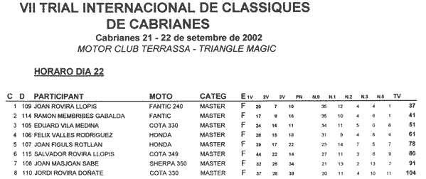 El cambio de moto no había ayudado mucho a ver al Estrada de la temporada pasada, y el dominio del 2.001 se convirtió en resultados mucho menos destacables en el 2.002. Pero en Cabrianes Francesc se puso las pilas y confirmó el dominio de la primera jornada con un solo punto en las veintidós zonas del domingo.