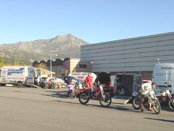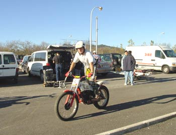 La tarde del sábado había sido fría y un fortísimo viento hizo pensar que a la mañana siguiente la climatología no sería nada agradable, pero sin embargo fue al contrario, el domingo amanecía soleado e incluso caluroso, lo que propició la llegada de numerosos aficionados que disfrutaron del paso de las bonitas clásicas por las complicadas zonas. El amplísimo paddock estaba montado en el parking del Polideportivo municipal, aunque costaba bastante encontrarlo ya que casi no había indicaciones y los participantes se perdían por el pueblo. El ambiente mejoraba cada vez más con la llegada de los pilotos llegados desde Cataluña, Valencia y Madrid que lucían sus impecables motos: Montesa, Bultaco, Ossa, Merlín, Fantic, Honda, Yamaha, BSA, Triumph, e incluso la Francis Barnett de Mick Wilkinson que Jaume Casadesús había tomado prestada del mito escocés.
