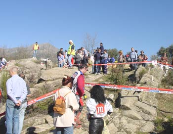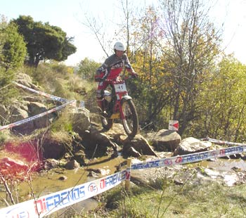 La zona séptima estaba bien planteada, con subidas y bajadas a grandes rocas y giros técnicos pero la belleza de la zona se echaba por tierra en un nuevo paso ratonero entre piedras en el que las motos no cabían y se quedaban encajadas, por lo que el varios era constante y la plasticidad y belleza del paso de la zona que podía haber hecho disfrutar a los espectadores se echaba de nuevo a perder. Como podéis imaginar el cabreo de algunos era considerable. Ya sólo quedaba la última zona, muy técnica y en la que de nuevo la piedra suelta, como si hubiese descargado un camión volquete formaba parte del inicio y del final de la misma, haciéndola peligrosa para máquinas y pilotos y también poco apta para un trial clásico. Los Master empezaban con un fortísimo escalón que ya sería realmente complicado para una moderna trialera del 2003, algunos sorprendían al pasar con gran dignidad mientras otros caían en un inevitable fiasco.
