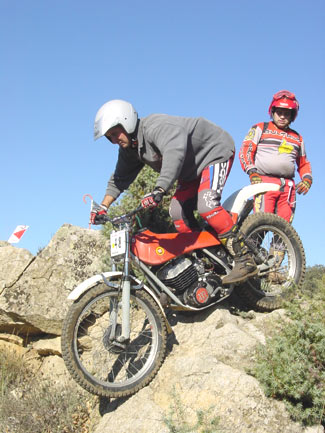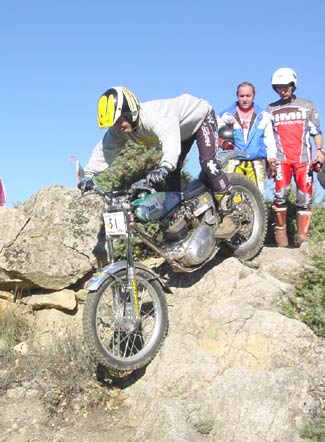 Como podéis comprender, el paso de los Pre-72 por las zonas se convertía en un precioso espectáculo, tanto por la belleza de las motos como por el gran nivel de los pilotos. El de Todotrial- Classic Team, Ramón Sallés, comenzaba muy inspirado marcando unas magníficas penalizaciones incluso en las zonas más complicadas a bordo de su BSA B40 de 4 tiempos, y se colocaba líder en los primeros compases de la prueba. Cerca le seguía Joan Cañellas con su Cota 247 "tambores grandes", finalizando ambos empatados a 4 puntos el primer giro. Pim Terricabras estaba a continuación con 7 y Lluís Galvany colocaba su Sherpa Kit con 9 puntos. Como veis la competencia era grandísima, y Soldevila se quedaba en la quinta posición provisional empatado a 12 puntos con Manuel Casado, mientras Echezarreta, Puigferrer y Casadesús quedaban ya descolgados.
