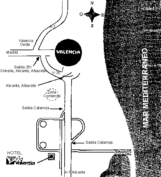 El Motoclub Sense Peus ha concertado un precio especial para los particioantes en la copa en el Hotel Vía Valentia, de tres estrellas, del que os ofrecemos un plano para acceder. El Hotel está a sólo 5 kilómetros de Valencia, en la Avenida Camí del Port s/n, Pista de Silla, en la localidad de Catarroja a la que se accede por la Autovía A-7 que enlaza Valencia con Alicante. El teléfono para realizar reservas es el 961 272 840 y el Fax 961 220 406.