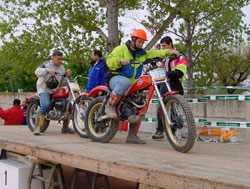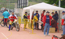 - La zona de salida y llegada, con rampa, carpas, podium para los tres primeros clasificados, unos preciosos trofeos y un espléndido parque cerrado con mucho público es sin duda todo un orgullo para la gente del M.C. Montbui. Al final del trial, además, se obsequió a todos los participantes y al público presente, sin excepción, con un abundante aperitivo gentileza del consistorio de la ciudad. Además los miembros del Ayuntamiento estuvieron presentes en la entrega de premios, con la Policia Municipal regulando el tráfico en la salida y entrada del paddock, cortando la carretera cada vez que tenía que cruzar un piloto. Todo un detalle, si señor.