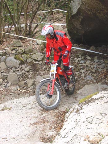 En Tona ya habíamos dicho al principio que las zonas de nivel rojo eran fuertes, por no decir muy fuertes, y es que Terricabras había decidido "darles caña" a los masters. Dicen los veteranos que en los triales muy difíciles las diferencias se acentúan, y la verdad es que en las duras pendientes de Tona, llenas de giros casi de moto moderna, la Fantic 240 de Joan Rovira no tuvo apenas rival. Y decimos apenas porque si bien al término del primer giro Ramon Plana era líder con diez puntos, con Rovira un solo pie por detrás, el fuerte calor y el estado de las zonas, mucho más delicadas por la tierra suelta tras el paso de las sesenta motos, pasaron factura al de Montesa que aumentaba a diecisiete y dieciséis los parciales en la segunda y tercera vuelta.