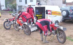 y sus ayudantes daban los últimos retoques a las motos de sus clientes