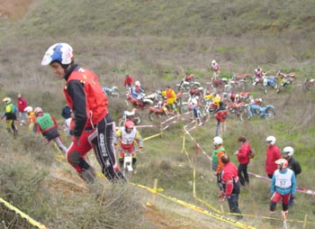 La mala suerte se cebaba también en Enric Francisco, cuando en la penúltima zona del trial sufría un fiasco de lo más tonto, se le cruzaba el manillar en una bajada de la zona de río y al poner una mano en el suelo sufría una fractura en el dedo meñique de la mano izquierda. La visión de su mano, con el dedo completamente descolocado de su sitio ponía los pelos de punta a quienes lo vieron. Pero lo peor fue que Enric tuvo que esperar más de una hora hasta que llegó la ambulancia, al menos una guapa chica le animó durante la larga espera. Desde Todotrial les deseamos a Enric y a Pere una rápida recuperación.