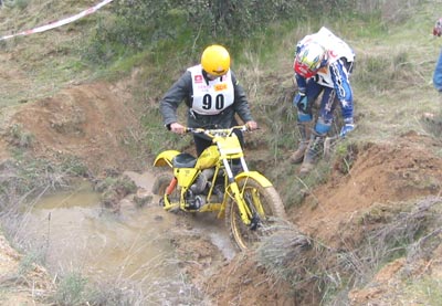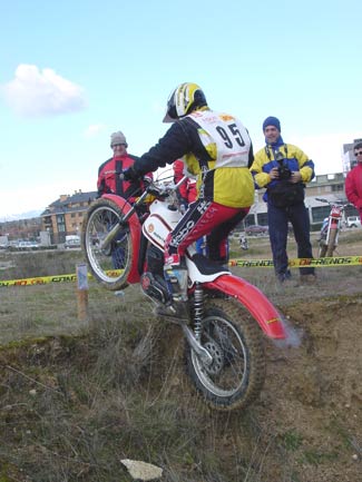 Pero las fuertes lluvias fueron protagonistas durante los días previos a la prueba, y esto marcaría notablemente la jornada del domingo. El día amanecía afortunadamente soleado, pero el frio era intenso, llegando a nevar en algunos momentos. El terreno había quedado mojado, y aunque en principio no parecía demasiado complicado, el paso de las motos hizo que las cosas fueran empeorando. La tierra blanda había absorvido mucha agua, que brotaba con el paso de las motos, llegando a formar grandes barrizales en algunas zonas. Al final todo resultó más complicado de lo previsto, con zonas difíciles a causa del barro pero en ningún momento peligrosas. Sin duda un trial al más puro estilo clásico que hubiese sido totalmente diferente de no llover los días previos.