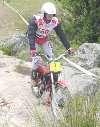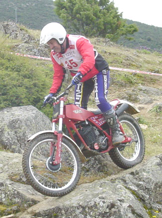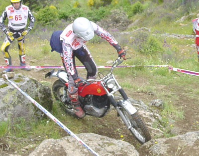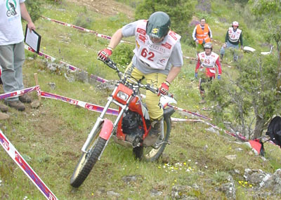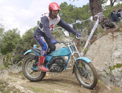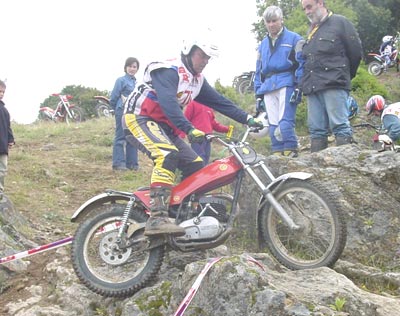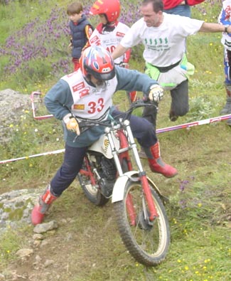 La otra pega fue la normativa impuesta por la FMM que no permite la salida a los pilotos que lleguen tarde a las verificaciones, que se cierran estrictamente a las 10 en punto de la mañana. Esto hizo que Luís Muñoz y Juan Manuel Castrillo no pudiesen salir por llevar unos minutos tarde. Una norma quizás demasiado estricta, sobretodo en este caso en el que uno de los perjudicados es uno de los más activos colaboradores a la hora de organizar los triales. No estaría mal sustituir tan estricta norma por otra que diese penalizaciones en forma de puntos a quienes llegan unos minutos tarde, y más en el caso de las clásicas en el que la Comisión está luchando por mantener un buen nivel de participación y fomentar el trial de clásicas. Pero vamos ya a ver lo que dio de sí el trial en lo deportivo.