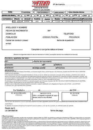 plazo de inscripciones y de solicitudes de licencia de una prueba está