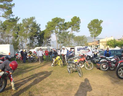 La mañana del sábado, en el habitual paddock formado en el campo de futbol de Cabrianes, junto a la escuela, se presentaba agradable y soleada, con una temperatura muy suave para estas fechas del año. Montones de coches y furgonetas llegaban, cada uno cargado con motos a cada cual más bonita, más especial.