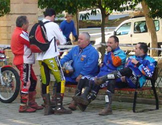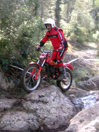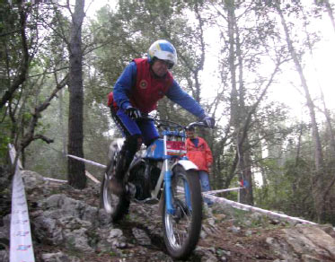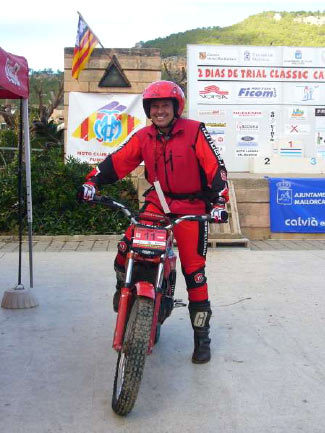 El Domingo amaneció despejado y todos estaban contentos ante las perspectivas de otro prometedor dia de Trial. Tolo Coll, del Moto Club Pollença, se bajaba del barco de vuelta de los 2 dies d'Eivissa y corría para inscribirse y poder participar el Domingo. !Esto es aficción de verdad!