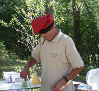 La mañana empezaba con un suculento desayuno a base de butifarra, pan tomaquet y buenas bebidas, amenizado por todo un genio y figura, Josep Soldevila