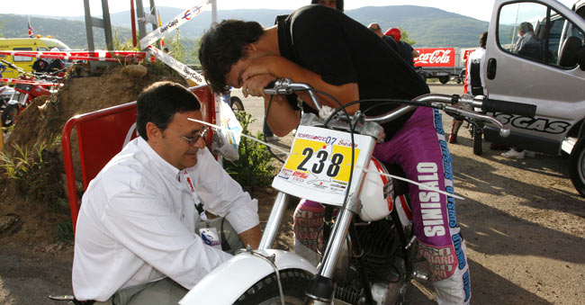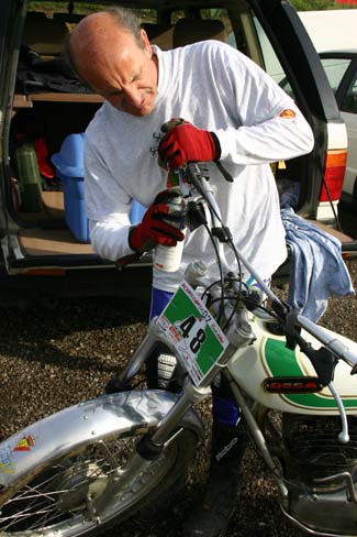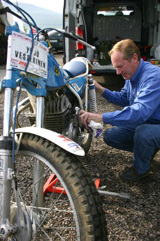 Jové poniendo a punto la moto de Vesty