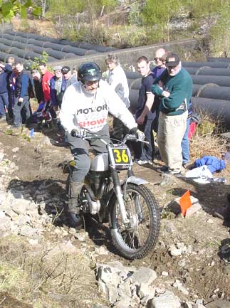 Carlos Casas es su nombre, muy buen trialero allí donde los haya, campeon de España y Catalunya en varias ediciones, piloto con más participaciones en los Seis Días de Escocia y ahora tambien en los dos días de pre-65, en fín que tiene un palmarés que se me hace muy dificil explicar por este medio.
