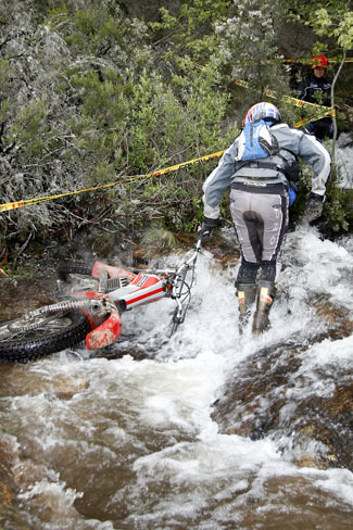 En esta ocasión uno de esos ingredientes fue la lluvia y el barro, que lejos de molestar hizo que el trial fuese aún más auténtico. Los montes que rodean Robregordo estaban realmente bonitos, verdes y floreados, los caminos embarrados y por tanto sin el molesto polvo, e incluso había un tramo con pequeños "blackwaters" que recordaba un poco a los terrenos de los highlands escoceses. En total 28,9 kilómetros de variada interzona con tramos complicados, tramos más sencillos, subidas, bajadas, mucho barro y vistas magníficas en los que se intercalaban 20 zonas en cada una de las jornadas. Además la interzona, aún más bonita que en ediciones anteriores, sirve para hacer un bien al medioambiente y a los vecinos de la localidad, ya que abre veredas abandonadas que pueden servir de vital importancia para el acceso en caso de urgencias. Un gran trabajo más por parte de los organizadores.