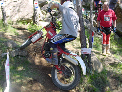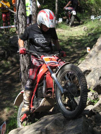 En la categoría Master o rojos, poco a poco nos vamos encontrando menor participación, cinco pilotos en esta ocasión. La dureza de las zonas hace que muchos pilotos hayan pasado a Expertos y otros llevan un tiempo de descanso, como es el caso del ex-campeón Joan Rovira, que volvía en este trial de Ripoll, aunque su falta de entreno se dejaba notar en su estado de forma.