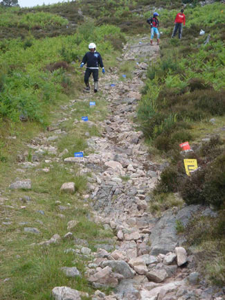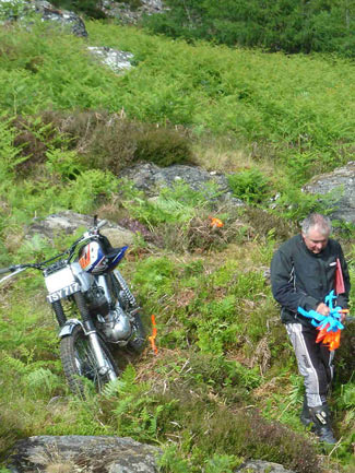 El viaje desde España es fácil; vuelo a Edimburgo o bien con una escala en Londres directamente a Inverness. Tanto en 2007 como en 2008 soy invitado el viernes anterior a la carrera a marcar las zonas, que por supuesto ya tienen pensadas Malcolm, Tommy y Alex. El marcaje es muy sencillo; tarjetas rojas a la derecha y azules a la izquierda, tantos años de experiencia acumulan estos trialeros, que saben colocar las tarjetas estratégicamente para que no haya ninguna duda de las diferentes trazadas y nadie se escape entre las puertas.