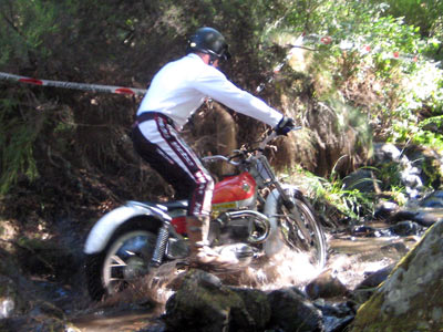El recorrido transcurría por el área de trial, a la cual podéis acudir en cualquier momento, contando con una vuelta a 19 zonas más una de repostaje y avituallamiento, y unos 20 kms de recorrido. La principal característica de este trial son sus zonas de agua, que este año pudieron disfrutarse más gracias a un caudal perfecto, aunque estaban más resbaladizas que nunca, por lo que algunos bromeaban con frases como "¿pero que pasa, es que echais aceite a las piedras?", "no, es que las pulimos bien para que estén brillantes", entre otras ocurrencias que muestran el ambiente amigable y distendido que reina siempre en los triales de clásicas, donde la competitividad, aunque presente, queda en segundo plano.