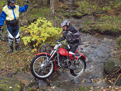 Aunque dan cabida a las motos modernas, apenas vi un par de Betas, una TR34 y una Techno que, para más inri, atacaban las zonas de nivel más bajo. En su favor debo decir que eran pilotadas por "venerables ancianos". Me llamó la atención uno de ellos que lucía un dos-piezas de cuero propio de moto de carretera... Había nada menos que seis pilotos mayores de 70 años...
