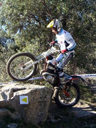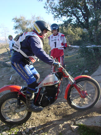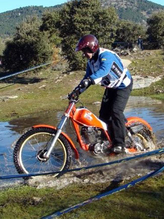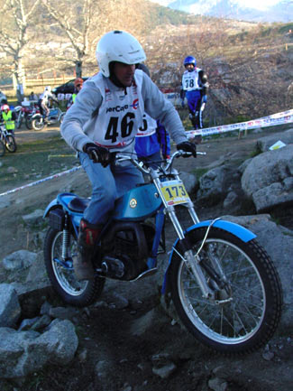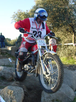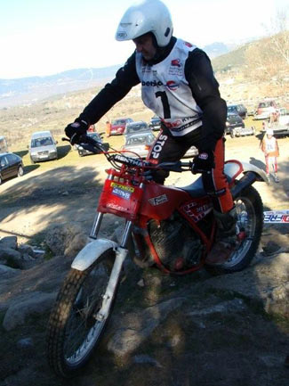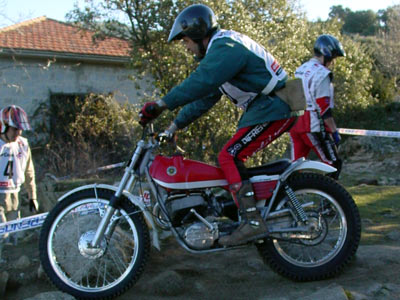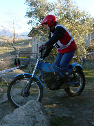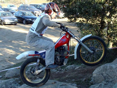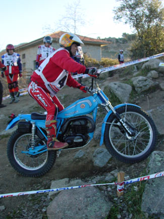 La segunda novedad fue la incorporación de Luis Arocas sobre su Ossa TR80 amarilla. El habitual piloto de clásicas B quiso probar suerte por vez primera en una categoría superior, aunque también lo hacía sin derecho a puntuar. Las reviradas zonas de Collado fueron quizás excesivas y Luis se cargó de puntos en la primera vuelta y optó por retirarse en la segunda. Y es que la diferencia de nivel entre el A y el B es más de la que parece, sobretodo en este trial, ya que en Villar del Olmo fue bastante más sencillo.